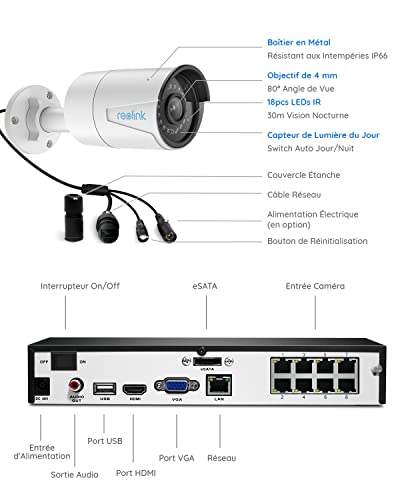 L’installation du kit Reolink est simplifiée grâce à la technologie Power over Ethernet (PoE). C’est une méthode qui permet de transmettre à la fois l’énergie électrique et les données via un câble Ethernet standard, ce qui signifie que vous n’avez pas besoin de câbles d’alimentation supplémentaires pour les caméras.